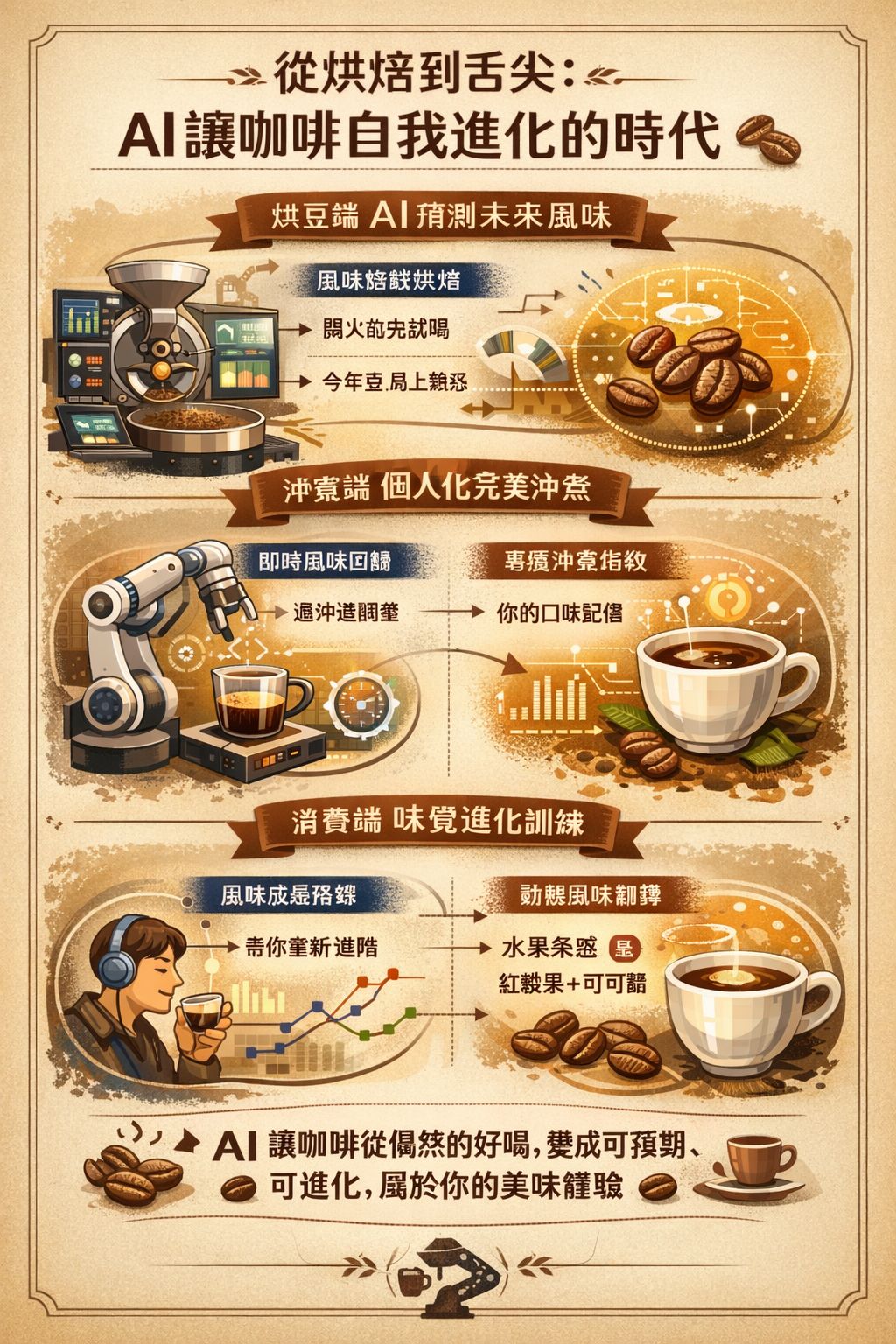 AI 讓咖啡變得更精準,但真正迷人的地方在於 —— 它正在把「偶然的好喝」,變成「可預期、可進化、屬於你的美味體驗」